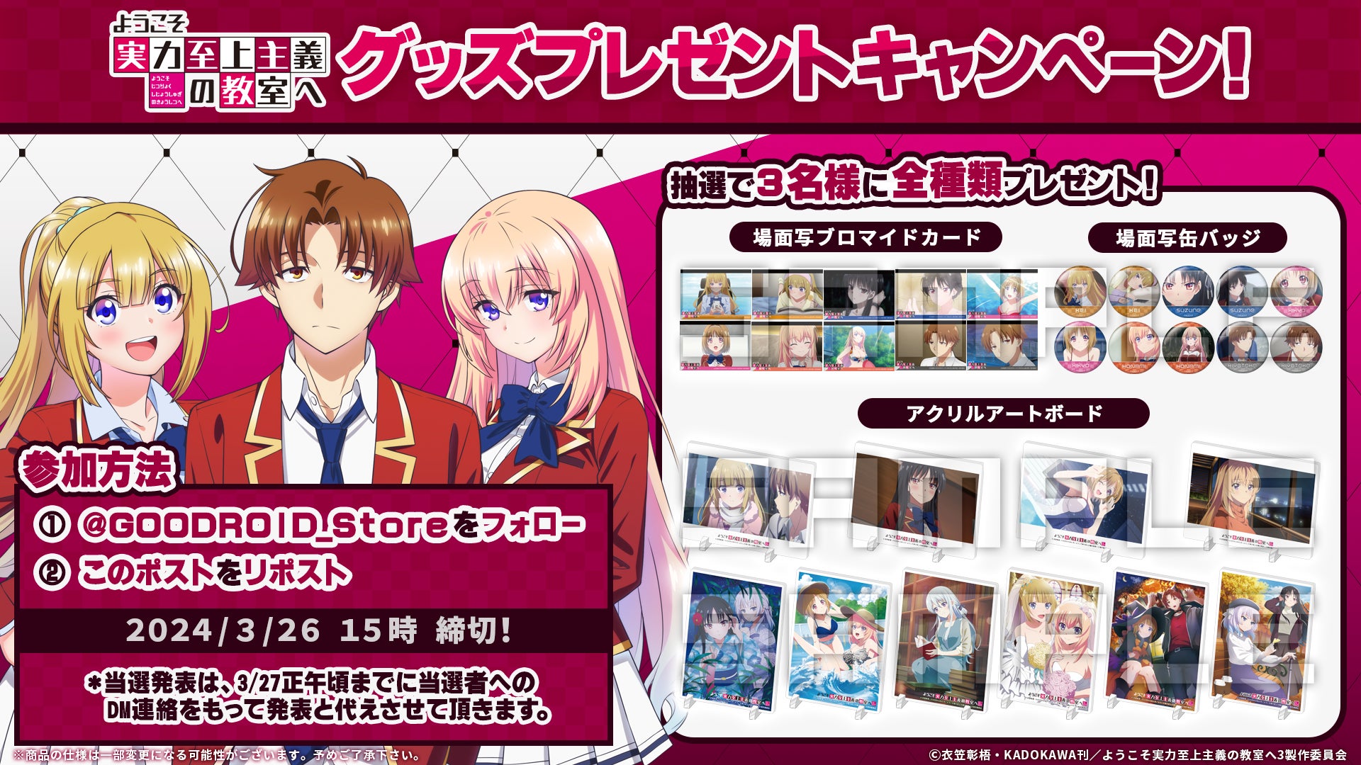 「ようこそ実力至上主義の教室へ」のグッズ販売を記念したフォロー&RPキャンペーンを