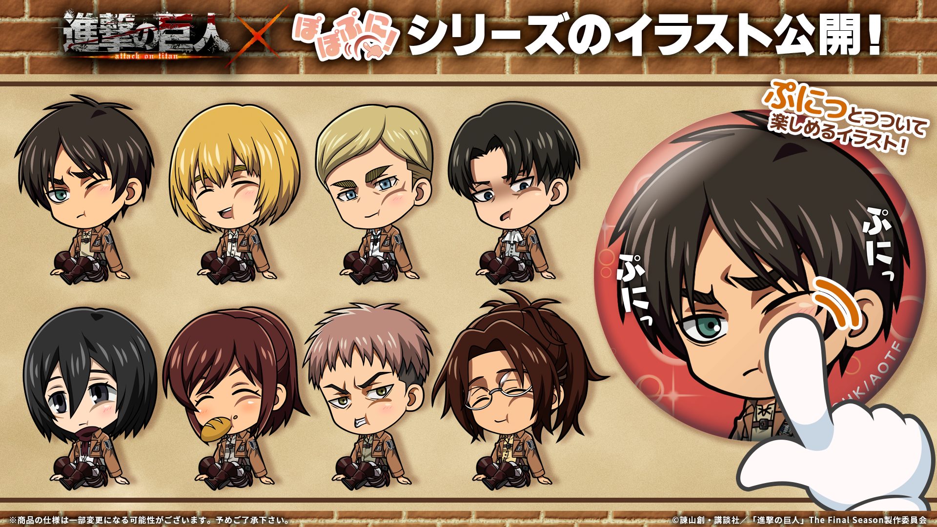 自社ECサイト「GOODROID Store」にて、オリジナルシリーズの「ぽぽぷに!」シリーズ第1弾 TVアニメ「進撃の巨人」のオリジナルグッズの予約を開始したことをお知らせいたします。