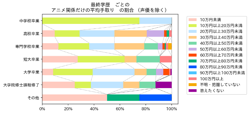 (図6:声優を除くアニメ業界従事者のアニメ関連月収の分布)