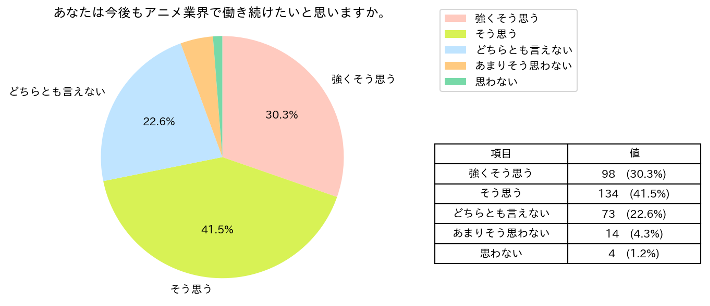 (図20:「今後もアニメ業界で働き続けたいと思うか」回答)