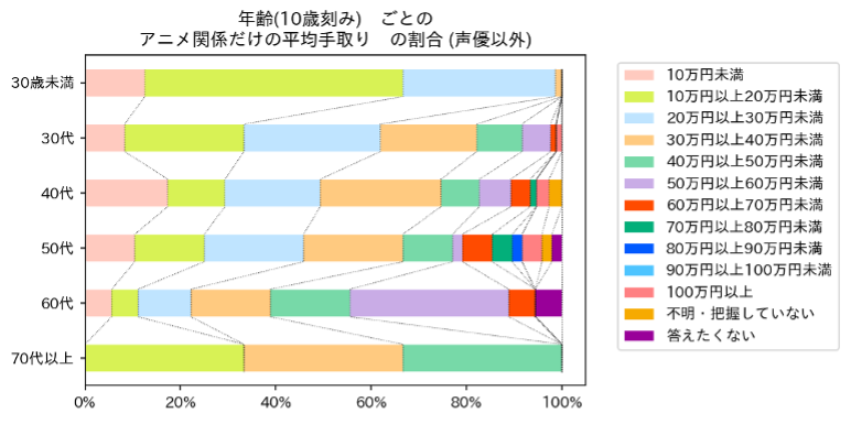 (図7:声優を除くアニメ業界従事者の年代ごとアニメ関連月収)