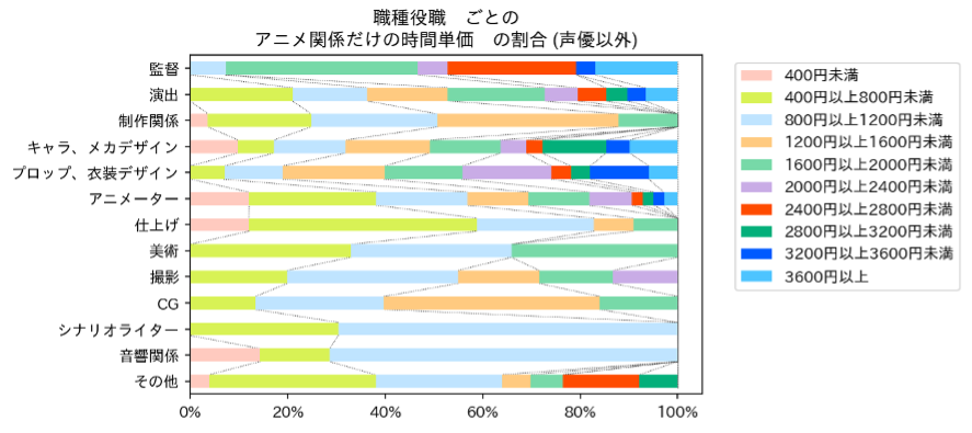(図12:声優を除くアニメ業界職種ごとの時間単価の分布)