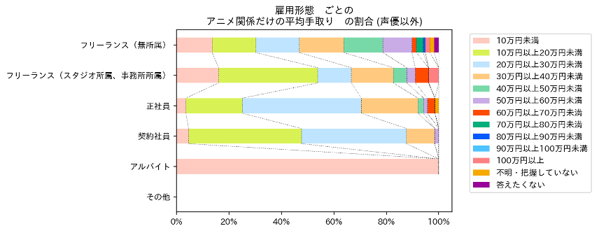 (図17:声優を除く雇用形態ごとのアニメ関連月収)