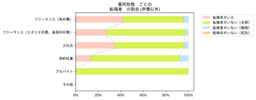 社員とフリーランスでの既婚率を見ると契約社員の既婚率が目に見えて低い他はフリーランスとの間で大きな差異はなく、社会全体での非正規雇用の既婚率と比べるとフリーランスの既婚率は高くなっています。(図19)