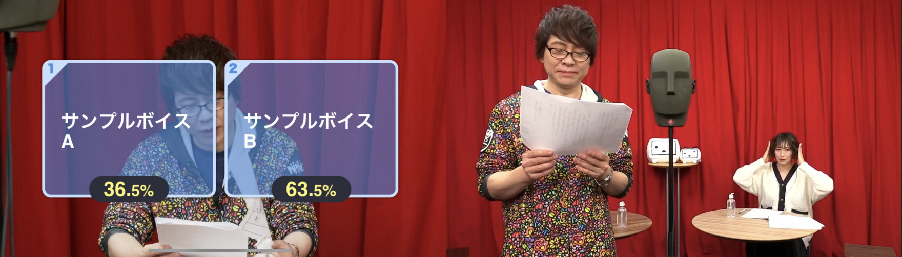 そんな和気あいあいとトークをしている最中に投票結果が発表!ユーザーが選ぶサンプルボイスは圧倒的人気で、ボイスBに決定しました。