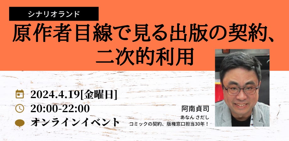 ■4月19日(金)「作者目線で見る出版の契約、二次的利用」開催!