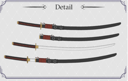 ベルト01+武器セット(線画素材)[刀01、ロングソード01、短剣01]