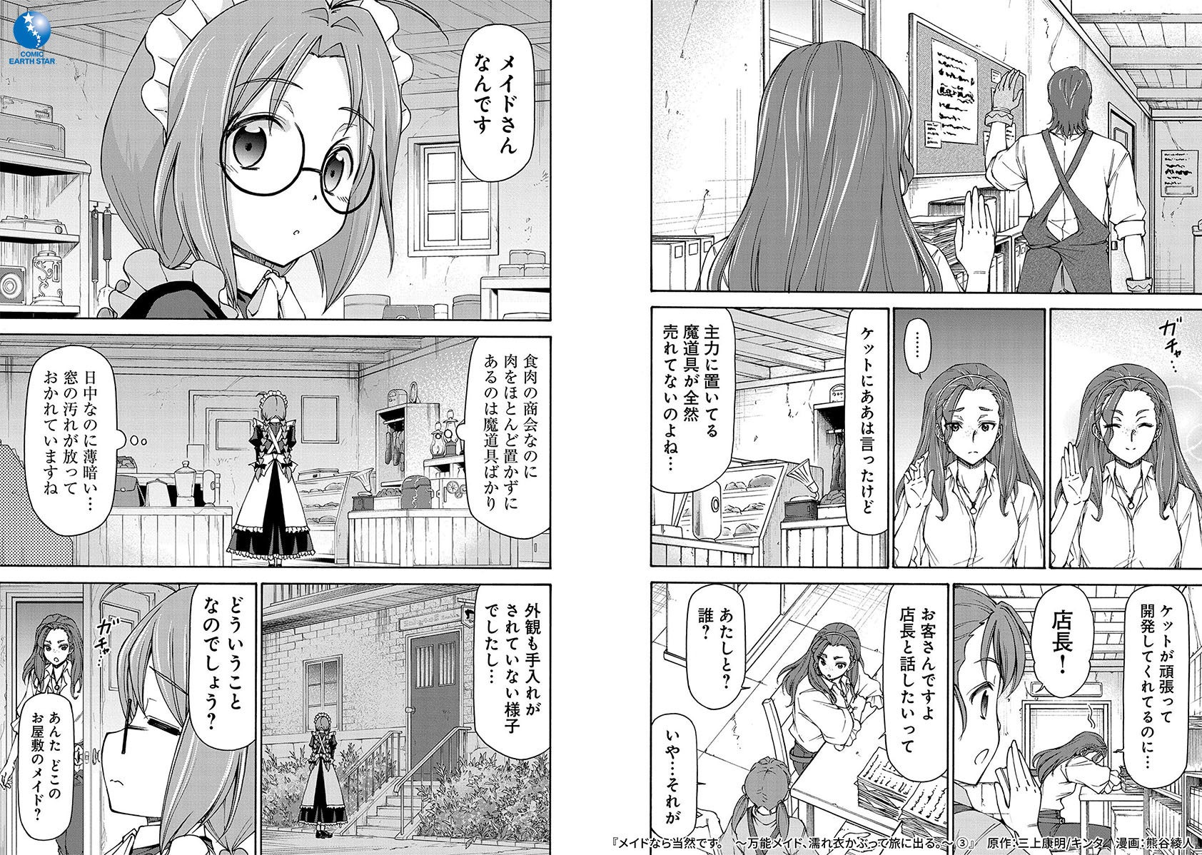 アース・スターノベルにて刊行中のノベルが原作で、現在コミック アース・スター公式サイトにて連載中の人気作品『メイドなら当然です。 ~万能メイド、濡れ衣かぶって旅に出る。~』(原作:三上康明/キンタ 漫画:熊谷綾人)第3巻を4月12日(水)に発売いたします。