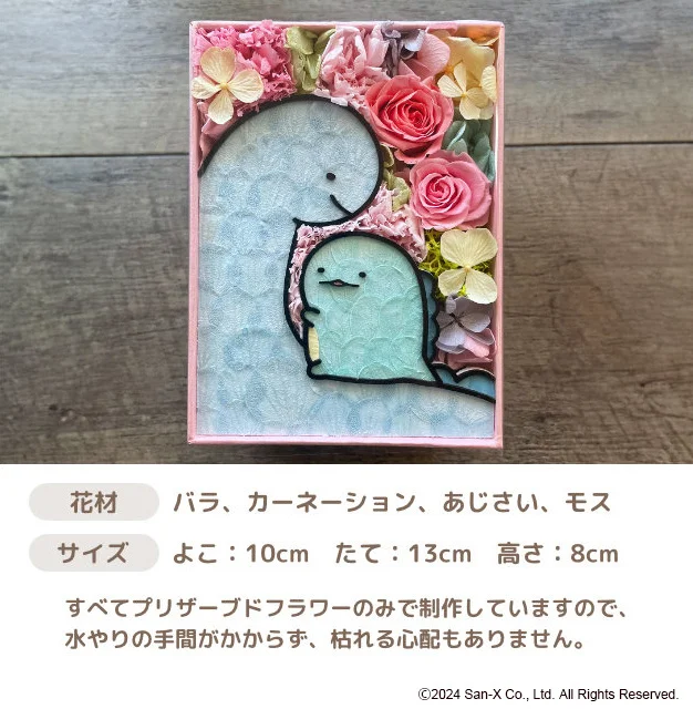 お部屋に飾るだけでおもわずほっこりと癒される、とかげととかげのおかあさんのフラワーBOX。ご自分用としても、すみっコぐらし好きなママへの母の日プレゼントとしても喜ばれること間違いありません。