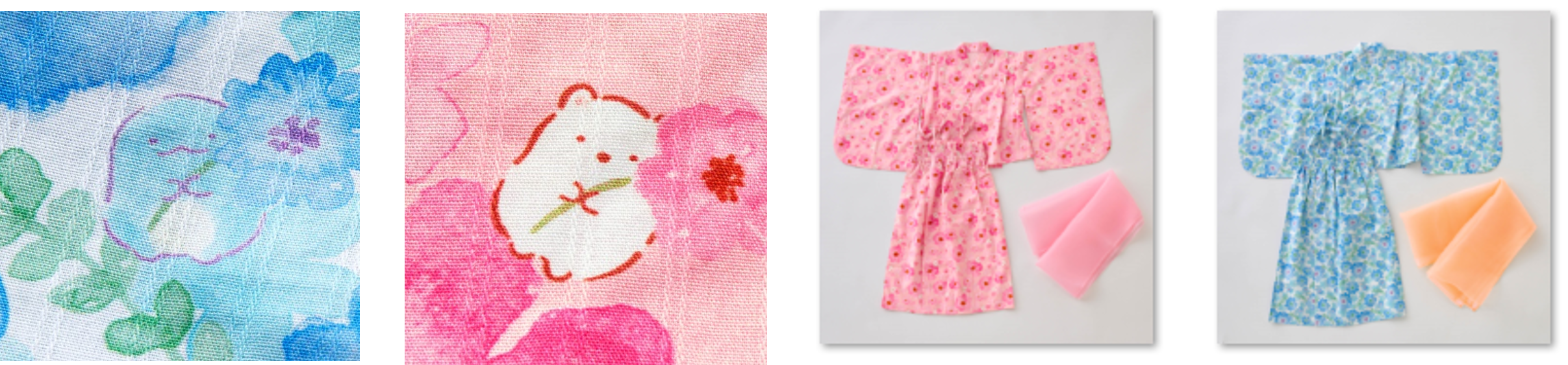 新柄の「2WAYキッズ浴衣(すみっコぐらし)」は、ブルー系の「とかげ」、ピンク系の「しろくま」の2色展開。