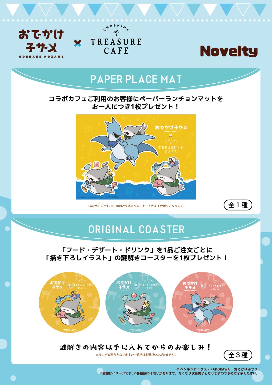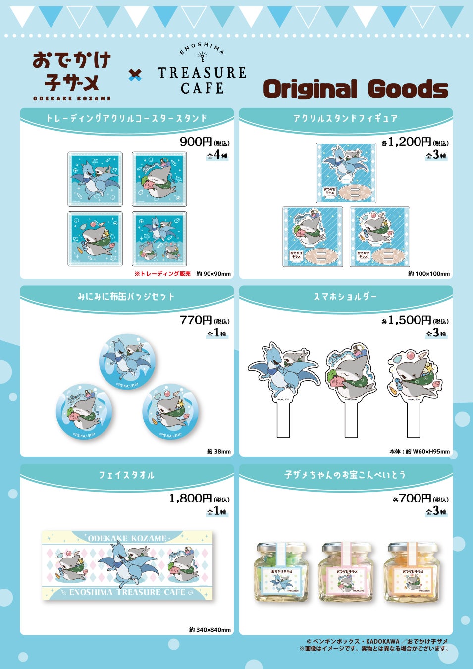 コラボカフェにて、ENOSHIMA TREASURE CAFE限定アニメ『お出かけ子ザメ』コラボグッズを販売いたします。