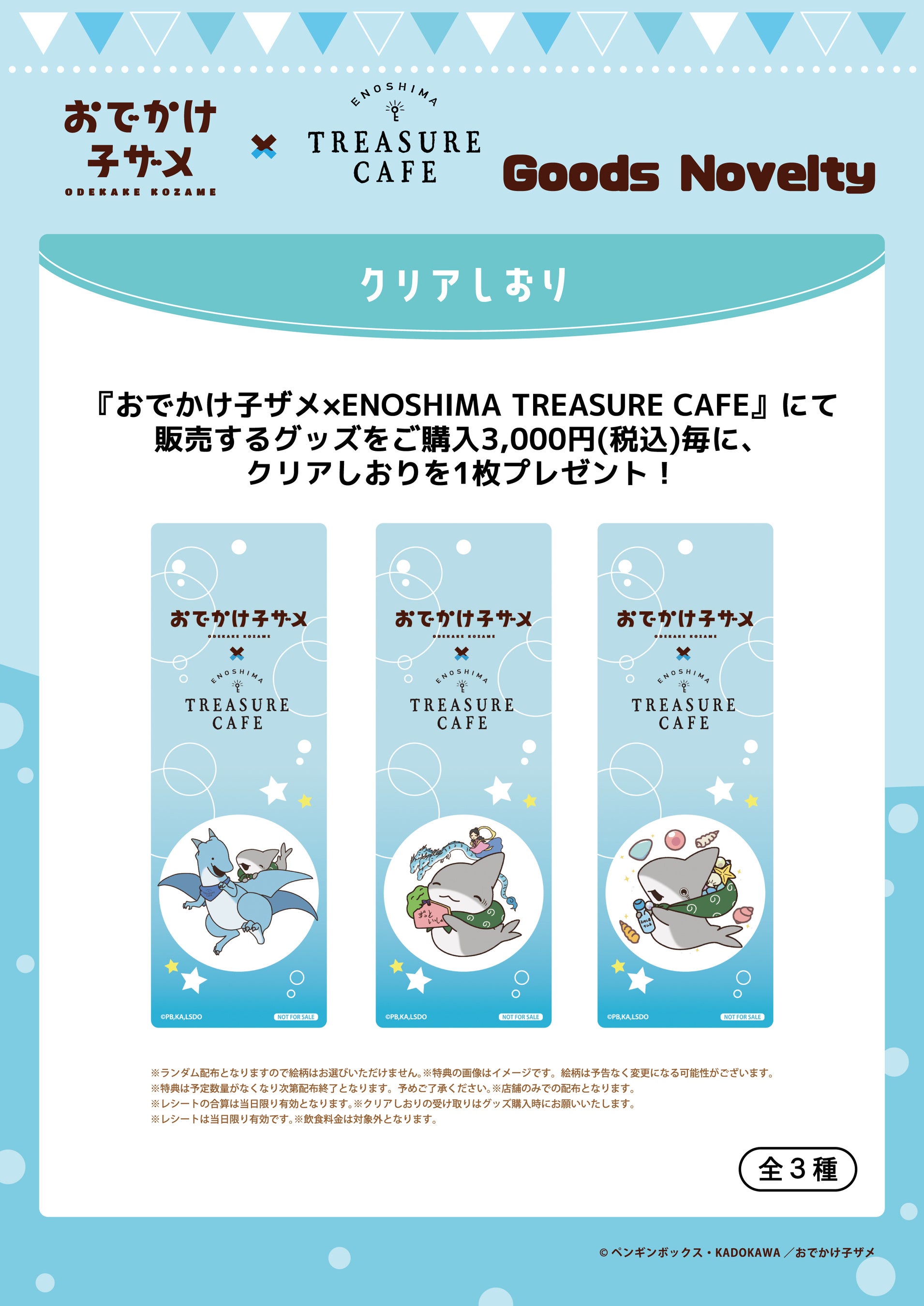 コラボカフェにて、ENOSHIMA TREASURE CAFE限定アニメ『お出かけ子ザメ』コラボグッズを販売いたします。