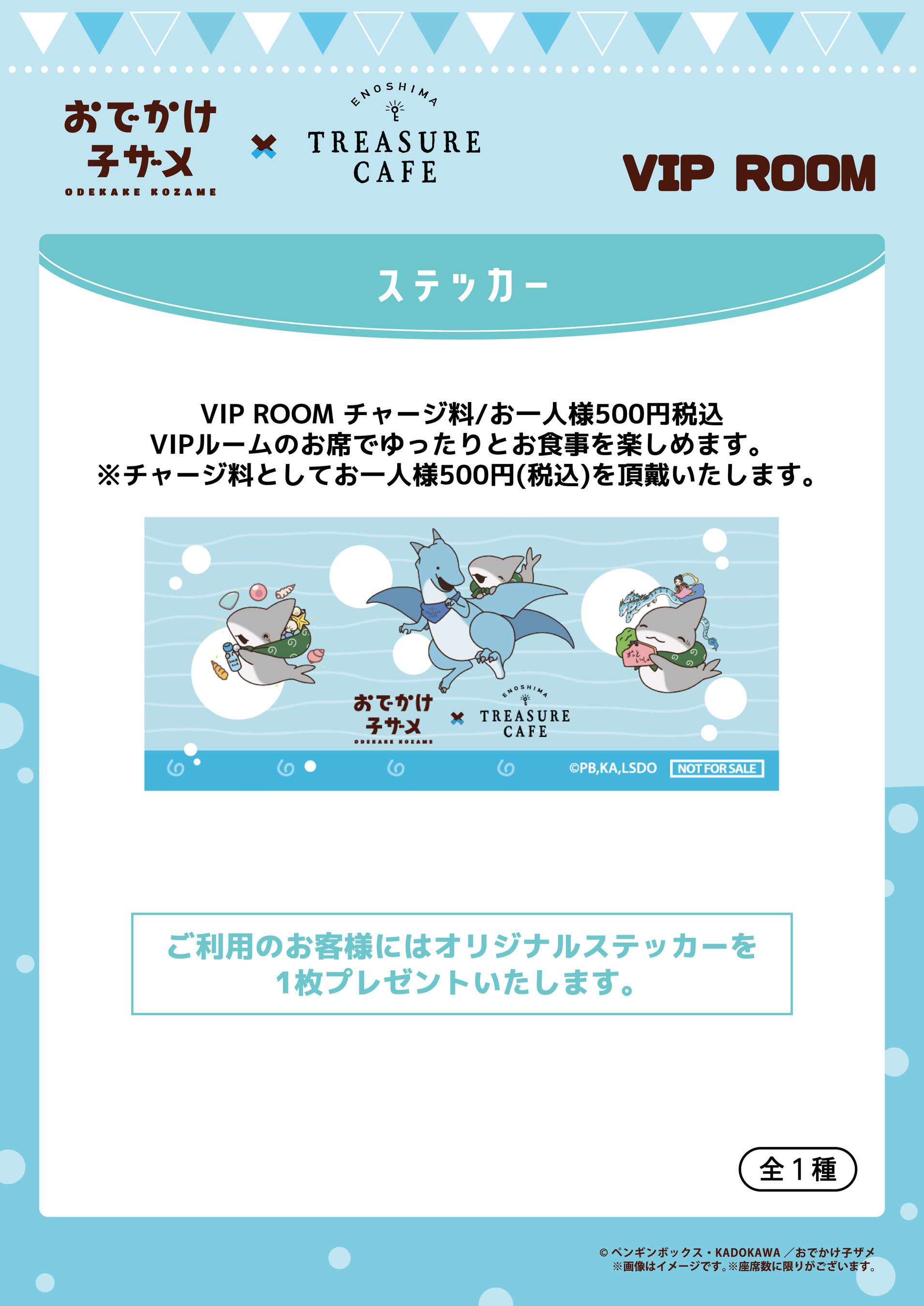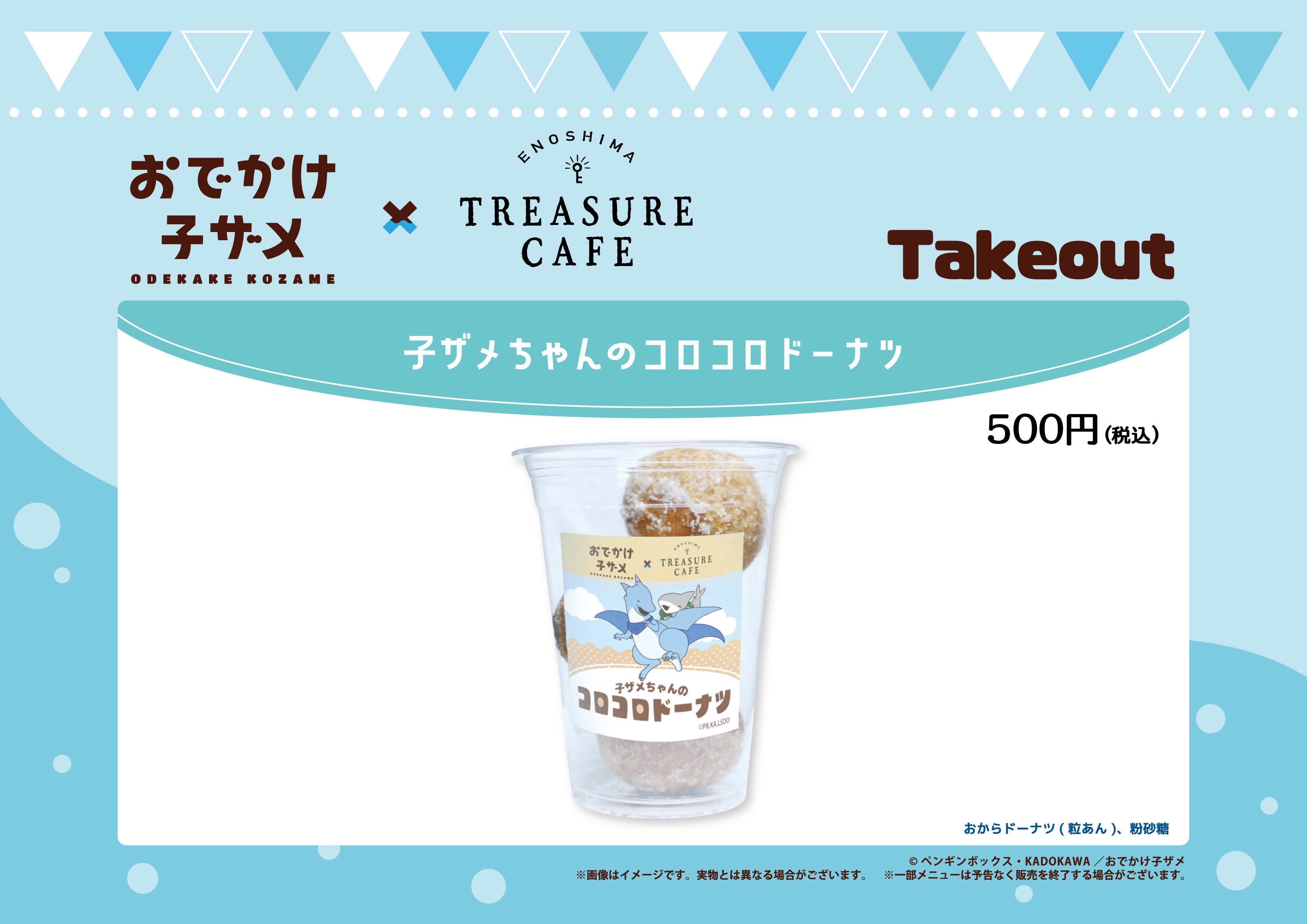 ENOSHIMA TREASURE CAFEでは従来のメニューにプラスして、アニメ『おでかけ子ザメ』オリジナルコラボメニューの提供を実施いたします。