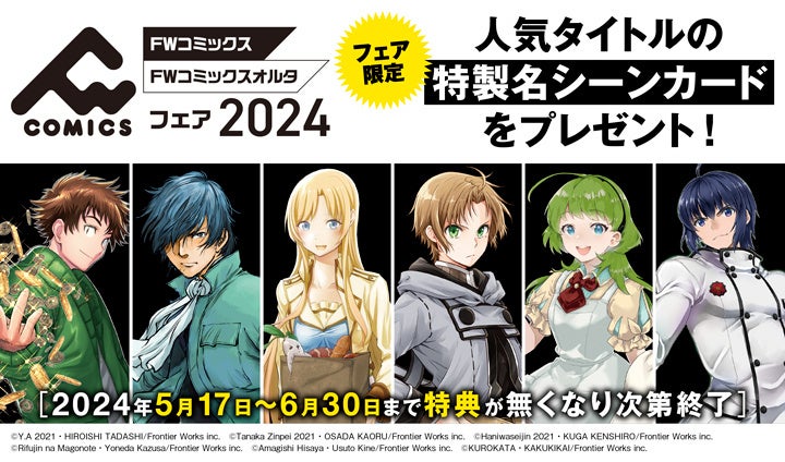 フェア開催中に対象店舗にて「FWコミックス」または「FWコミックスオルタ」の作品をご購入いただいた方に、人気タイトルの「特製名シーンカード」をプレゼントいたします!!