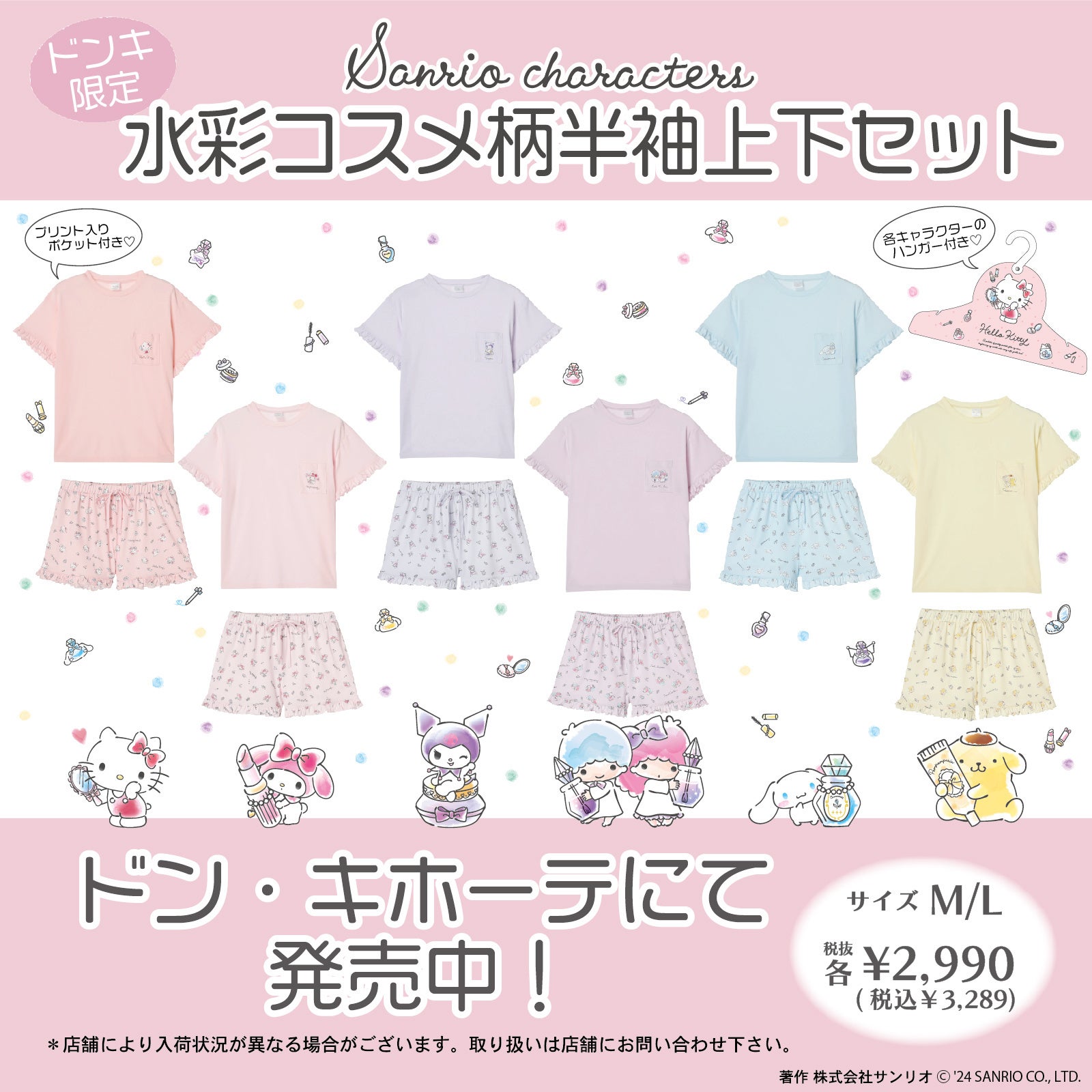 サンリオキャラクターズのコスメをモチーフにした⽔彩コスメアートがキュートな半袖パジャマと半袖