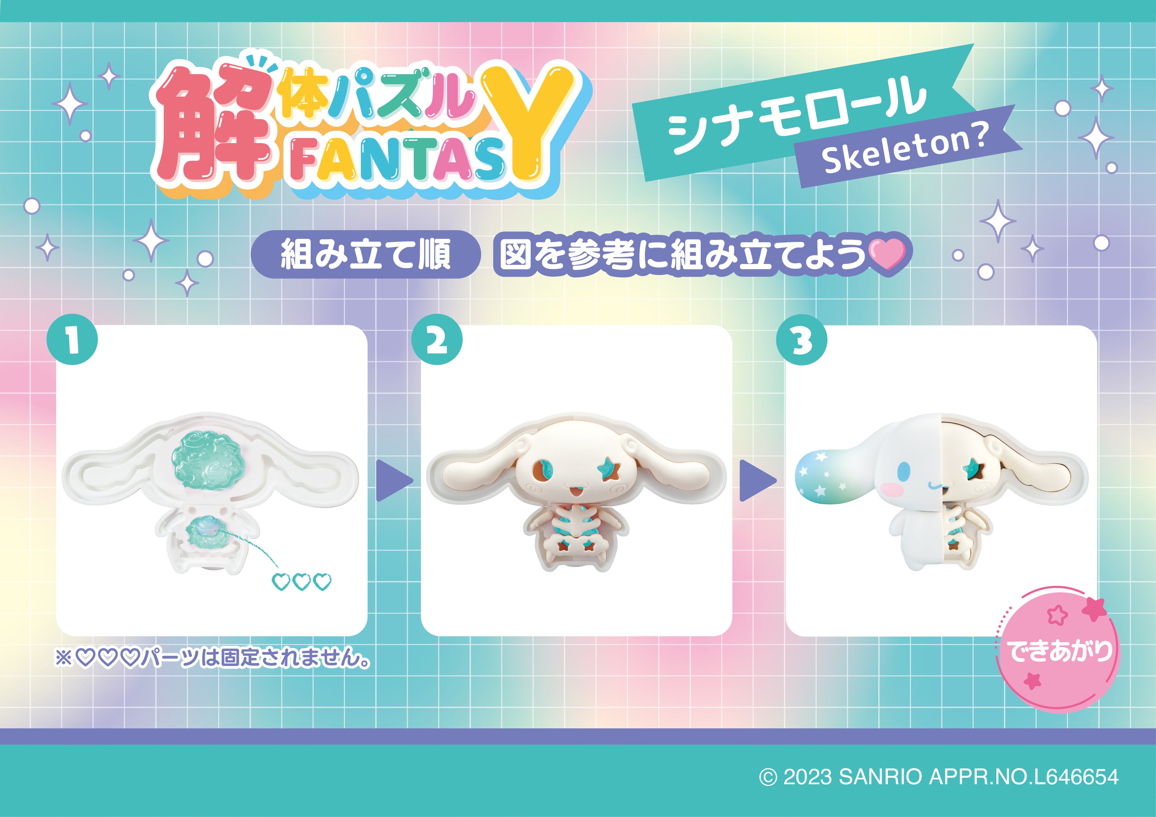 「解体パズルFANTASY サンリオキャラクターズ フポップミントMix」は、女性に人気のポップミントカラーを基調に「シナモロール」「ポムポムプリン」「クロミ」「マイメロディ」 の全4種のラインアップです。