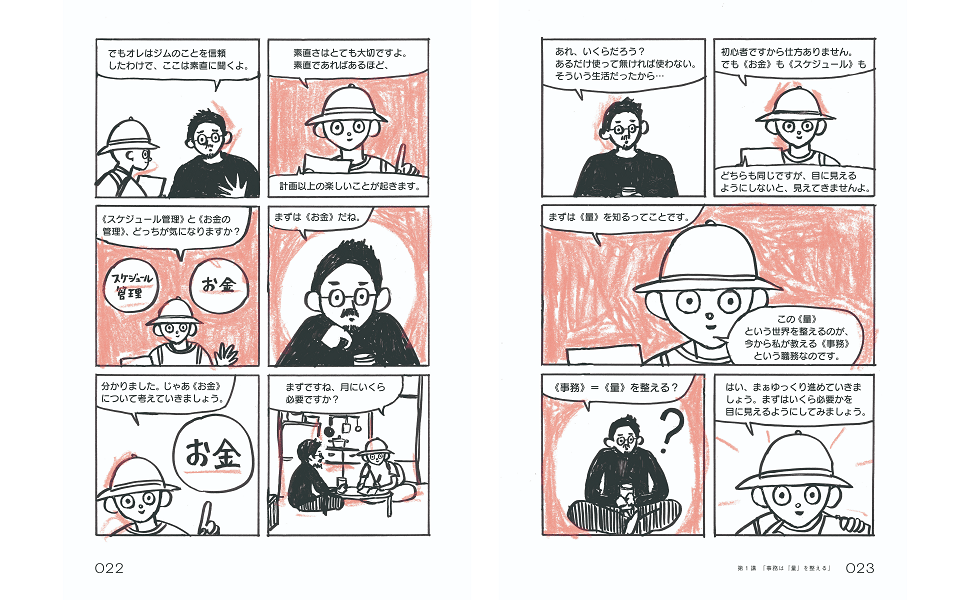 本作は、作家・建築家・画家・音楽家・「いのっちの電話」相談員として多方面で活躍する坂口恭平さんが、若い頃に出会った優秀な事務員・ジムとの対話を通じて学んだ事務作業の秘訣を、漫画家・道草晴子さんがわかりやすくコミカライズした実用コミックです。