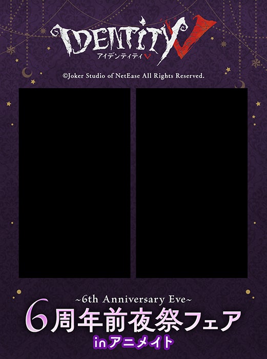 『Identity V』6周年前夜祭フェア ~6th Anniversary Eve~ inアニメイトで発売される新規シリーズのイラストをコンセプトとしたオリジナルフレーム全8種類が登場!プリントシートもフェア限定デザインとなっていてこの期間でのみ撮ることが可能です。
