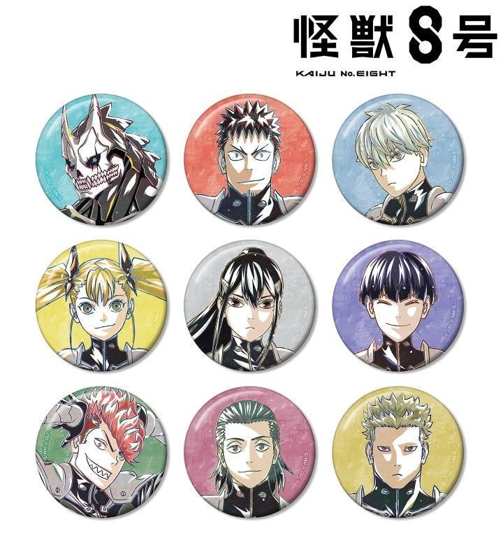 怪獣8号、日比野カフカ、市川レノ、四ノ宮キコル、亜白ミナ、保科宗四郎、古橋伊春、出雲ハルイチ、神楽木葵のイラストを新たなタッチで魅力的に表現し、缶バッジに仕上げました。