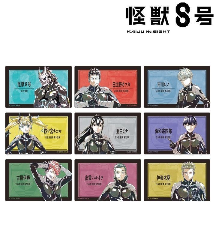 種類 :全9種(怪獣8号、日比野カフカ、市川レノ、四ノ宮キコル、亜白ミナ、保科宗四郎、古橋伊春、出雲ハルイチ、神楽木葵)