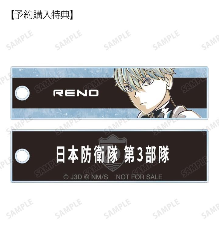 怪獣8号、日比野カフカ、市川レノ、四ノ宮キコル、亜白ミナ、保科宗四郎、古橋伊春、出雲ハルイチ、神楽木葵のイラスト、エンブレム、キャラクター名を新たなタッチで魅力的に表現し、スティック状のアクリルキーホルダーに仕上げました。