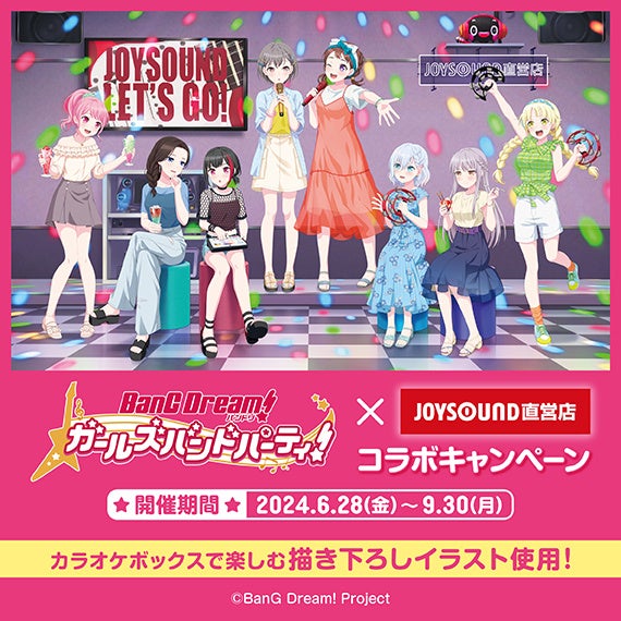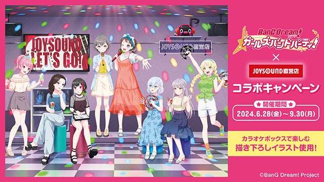 株式会社エクシングの子会社で、全国にカラオケ店舗を展開する株式会社スタンダード(本社:東京都港区、代表取締役社長:米田洋一)は、2024年6月28日(金)から2024年9月30日(月)までの期間中、『「バンドリ! ガールズバンドパーティ!」×JOYSOUND直営店コラボキャンペーン』と題し、JOYSOUND池袋西口公園前店(東京)・JOYSOUND金山店(愛知)・JOYSOUND心斎橋店(大阪)の3店舗にカラオケコラボルームをオープン!また、JOYSOUND直営店全店舗にて、オリジナルポストカード付きコラボドリンクを展開します。さらに、限定店舗およびオンラインストアにて、オリジナルグッズの販売も行います。当コラボでは、「戸山香澄」「美竹蘭」「丸山彩」「湊友希那」「弦巻こころ」「倉田ましろ」「レイヤ」「高松燈」の描き下ろしイラストを使用いたします!