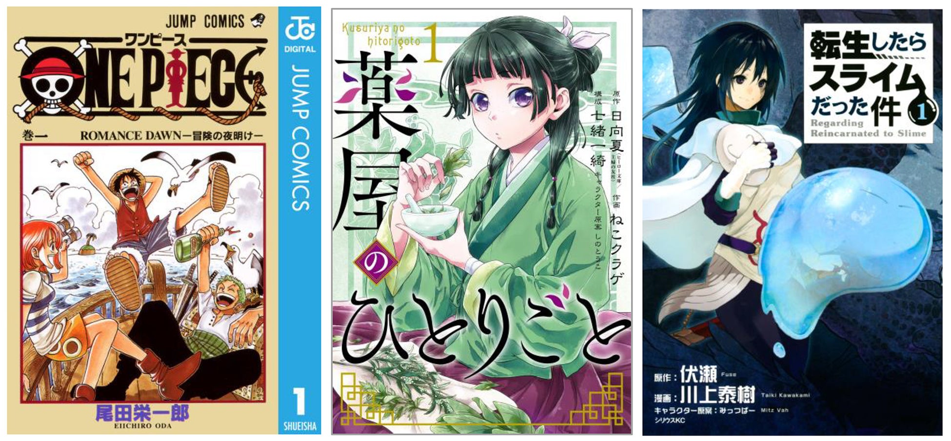 5,800票を超える投票の中からもっとも多くの票を集め、栄えある第1位に輝いたのは、連載25年を超える伝説的ベストヒット作品『ONE PIECE』! 続いて第2位は、アニメ化第2期も決定した後宮謎解きエンタテインメント『薬屋のひとりごと』、第3位は、ライトノベル・コミック・アニメともに人気の”転スラ”シリーズ『転生したらスライムだった件』となりました。4位以下の作品および投票いただいたユーザーからの熱いレビューコメントは、特集ページをぜひご覧ください。