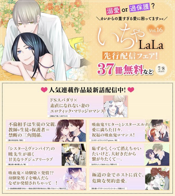 いちゃLaLa配信記念フェア開催中♪(主要電子書店にて7/8まで開催)
