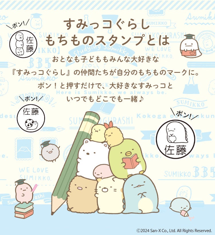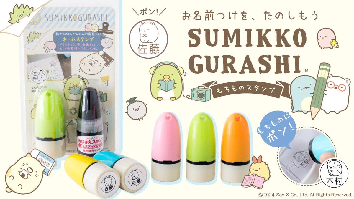 ポン!と自分のもちものに押すだけで、いつでもどこでも大好きなすみっコと一緒にいられる「すみっコぐらし もちものスタンプ」。保育園などに通われるお子さまの持ちものはもちろん、職場の事務用品やペットボトルにも使えます。