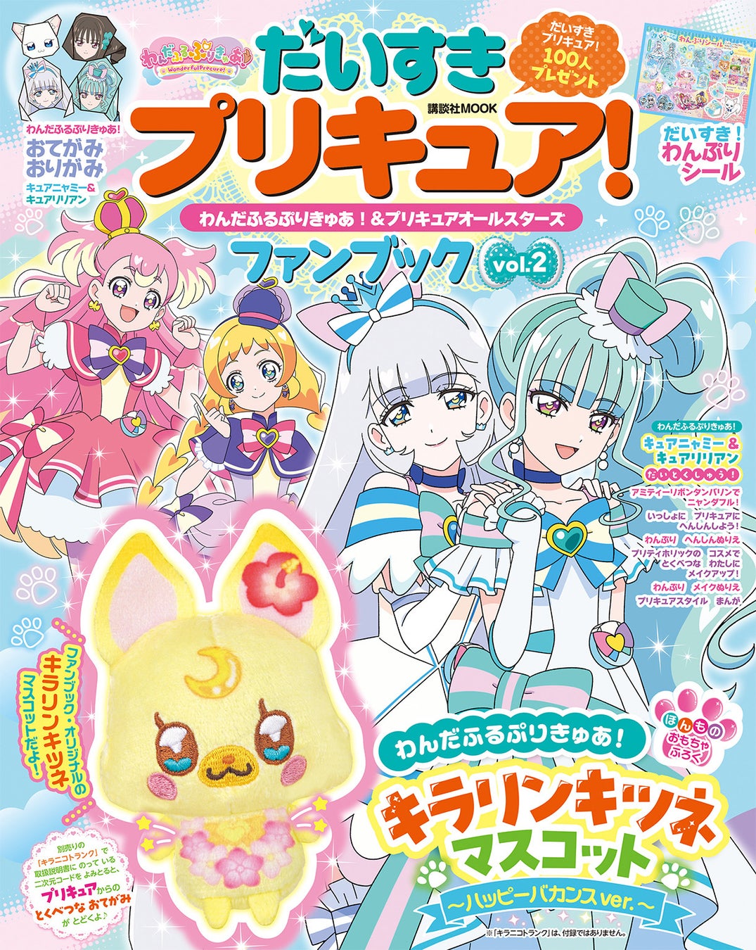 株式会社講談社は、2024年6月28日に「だいすきプリキュア! わんだふるぷりきゅあ!&プリキュアオールスターズファンブックvol.2」を発売します。付録は、ファンブック限定アイテム「キラリンキツネマスコット〜ハッピーバカンスver.〜」。