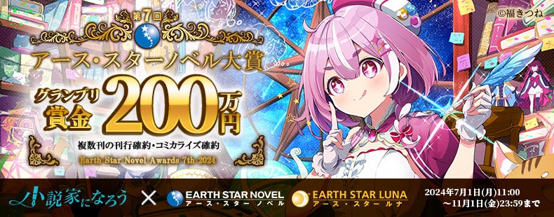 株式会社アース・スター エンターテイメント(東京都品川区)は同社が刊行するノベルレーベル【アース・スターノベル】と【アース・スター ルナ】による、株式会社ヒナプロジェクトが運営する『小説家になろう』との共同企画「第7回アース・スターノベル大賞」の開催を特設サイトにて本日発表いたしました。