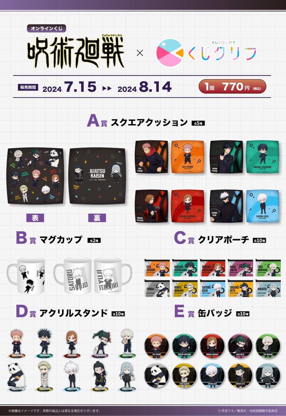 株式会社サトクリフは、くじクリフTVアニメ「呪術廻戦」を2024年7月15日(月)10時より販売開始いたします。