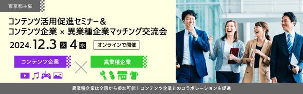 「コンテンツ企業×異業種企業 マッチング交流会」オンライン開催決定!全国の異業種企業との商談/コラボレーションに興味のある東京の “コンテンツ企業” を大募集! 開催日:12月3日(火)・4日(水)