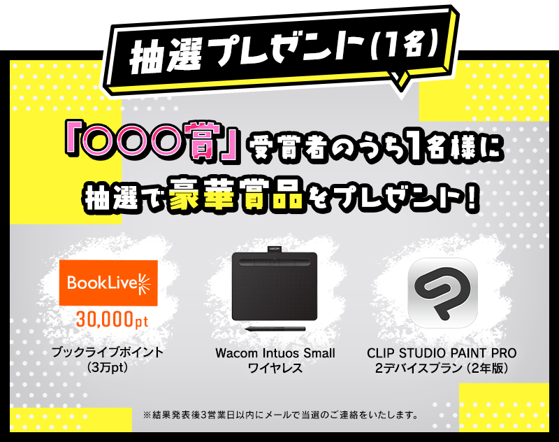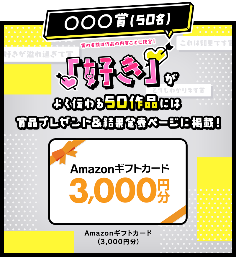 賞の内容は、結果発表までのお楽しみ!?受賞者50名のうち1名に抽選で豪華賞品プレゼント!