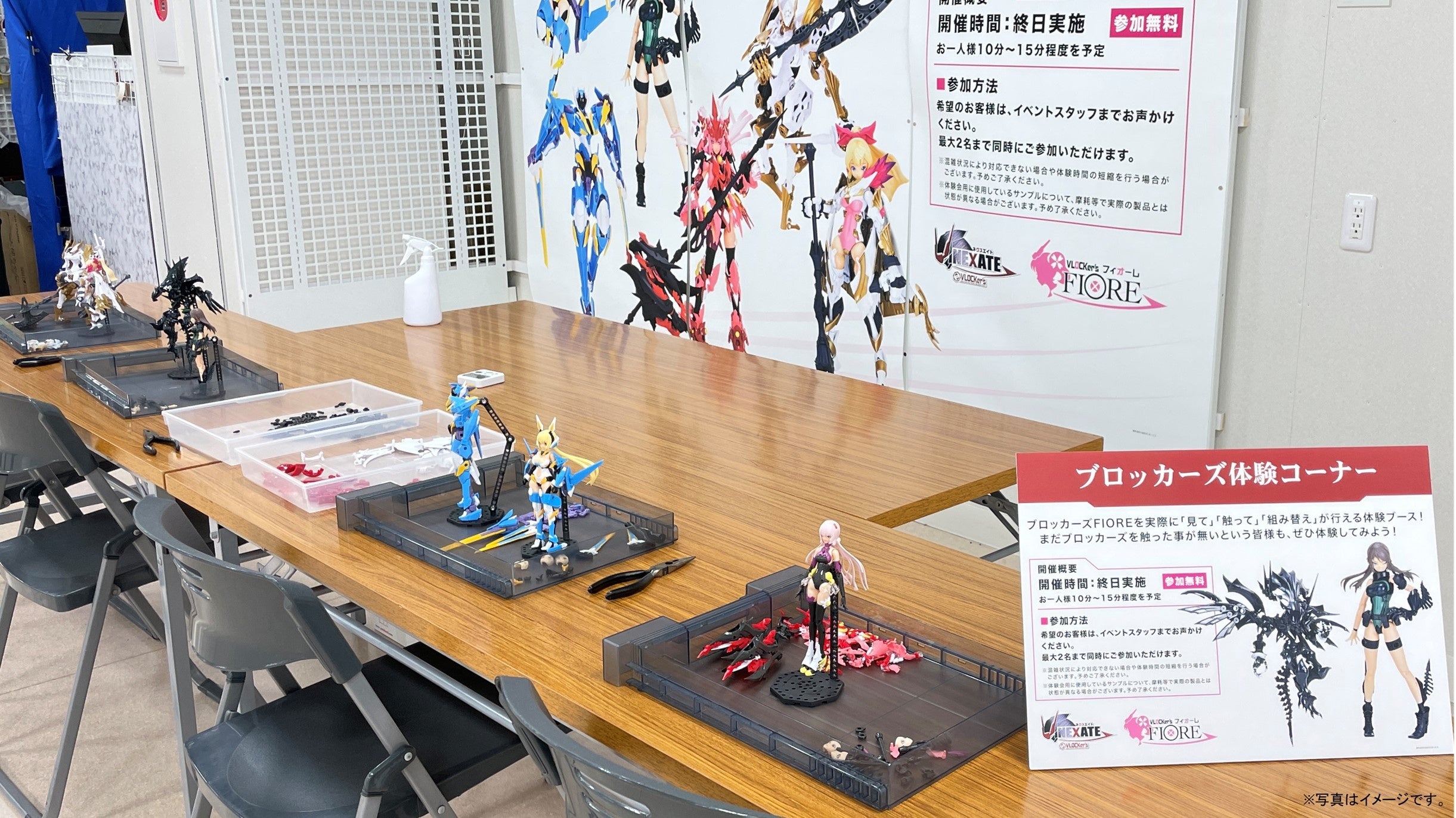 組み替えアクショントイ「ブロッカーズ」と女の子プラキット「ブロッカーズFIORE」を体験 FIORE第1弾「プリムラ」から最新作「ルピナス」まで全種を実際に触れるコーナーも