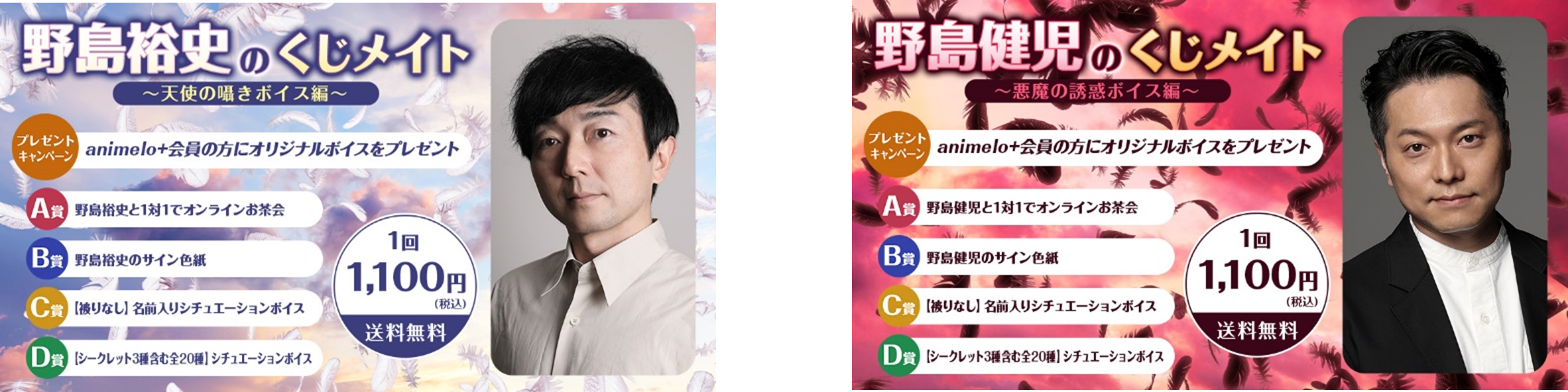 A賞:野島裕史と1対1でオンラインお茶会、野島健児と1対1でオンラインお茶会
