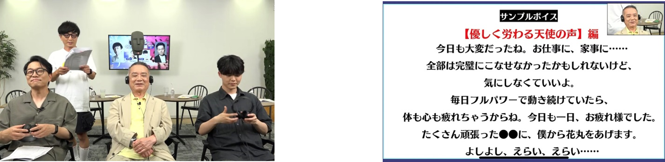 そしてここで、なんと「お試し体験」として、バイノーラルマイクを使用したサンプルボイスを生収録。まずは長男・裕史の収録からですが、ほかの3人はマイク前に用意された特等席でヘッドフォンからその音声を楽しめる特別仕様に。「聞こう聞こう!」と昭生と透也がこぞって前へ移動し、生収録が開始。収録が始まると透也は「イヤホンで聞くと臨場感がすごい!リアルヒロくん(裕史)がいた!」と大興奮。優しい癒しボイスに、スタジオもコメント欄も思わず聞き惚れました。