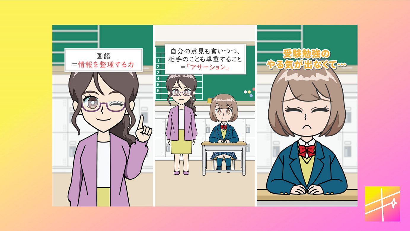 「短い時間で知識を得られる」をテーマに、オリジナルキャラクターによるコミカルなアニメーション動画を配信することで、勉強や進路、人間関係など高校生のリアルな悩みを解決します。また、映像によってわかりやすく気軽に作品に触れられることで、原作をすでに読んだことがある読者だけでなく、ティーンを中心とした新たな読者との接点を増やし、作品の魅力を届けるサイクルを作り出します。