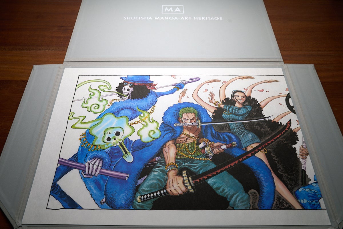 『ONE PIECE』には、紙を横につないで描かれた作品が複数存在します。それらは、連載10周年、20周年などの記念タイミングで描かれてきました。多くのファンに愛され、ポスターやグッズ、フィギュアなどにもなってきたイメージ。このイメージを、可能な限り美しく、可能な限り未来に届ける。このために、特別な紙と特別な印刷を選びました。