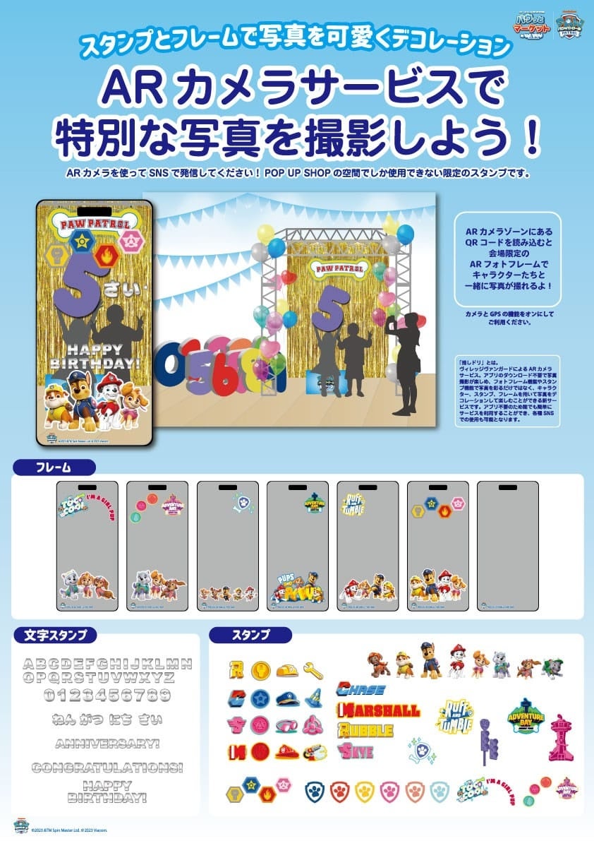 チェイス・マーシャル・スカイのBIGバルーンや、ARフォトフレームで撮影できるアニバーサリーフォトスポットなどで可愛い写真が撮れるだけでなく、限定ノベルティが当たるガチャも登場し、買い物ができるだけでなく家族みんなで楽しめるPOP UP STOREとなっています。