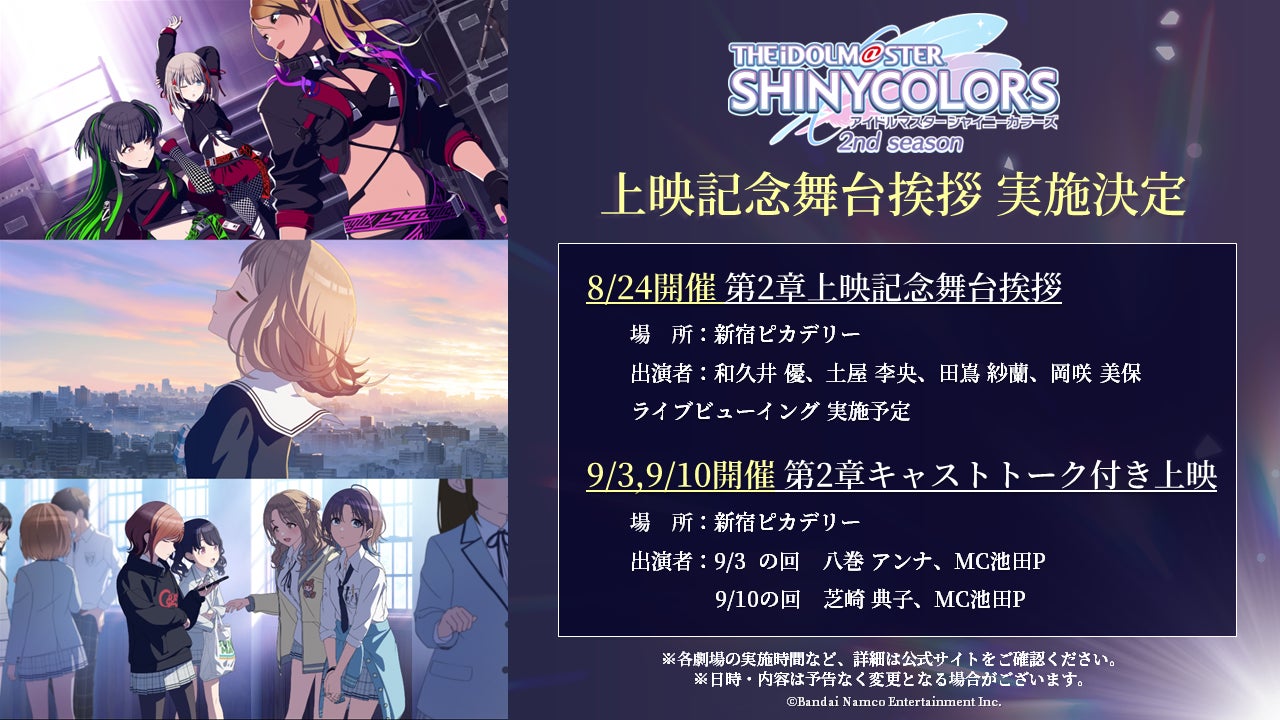 株式会社バンダイナムコエンターテインメントは、アニメ『アイドルマスター シャイニーカラーズ 2nd season』(以下、シャニアニ2nd)の劇場先行上映 第2章本予告を公開したことをお知らせいたします。