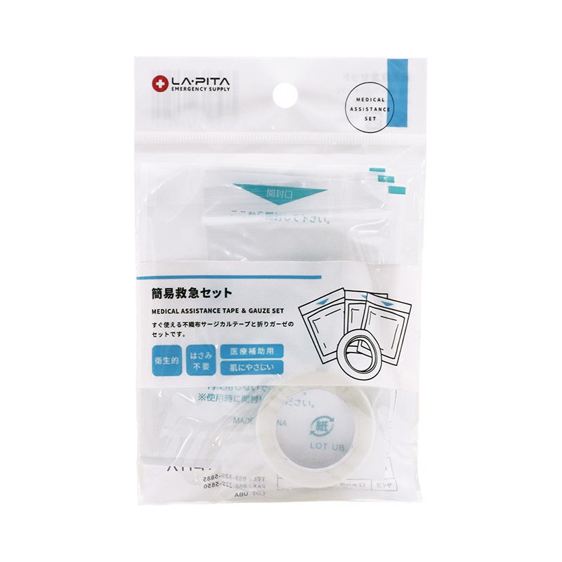 商品セット内容:ポーチ(ショルダータイプ/紐取り外し可能)、ダイカットリフレクター、レスキュー寝ぶくろ L-RN-2201、ハイブリッド レスキューシート L-HR-2201、目かくしポンチョ L-MP-2201、携帯トイレONE® L-TO-2201、簡易救急セット L-KK-2201、蓄光ホイッスル L-TW-2201、ファストエイド M-024 絆創膏 M4S2