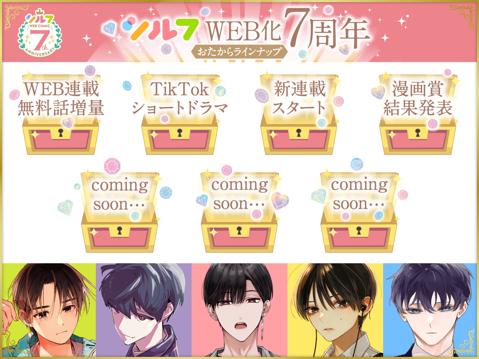 7周年のテーマは「はっくつ!」。心ときめく物語や、魅力的なキャラクターたちとの、まだ見ぬ宝物のような出会い……そのきっかけとなるよう、様々な企画を展開します!