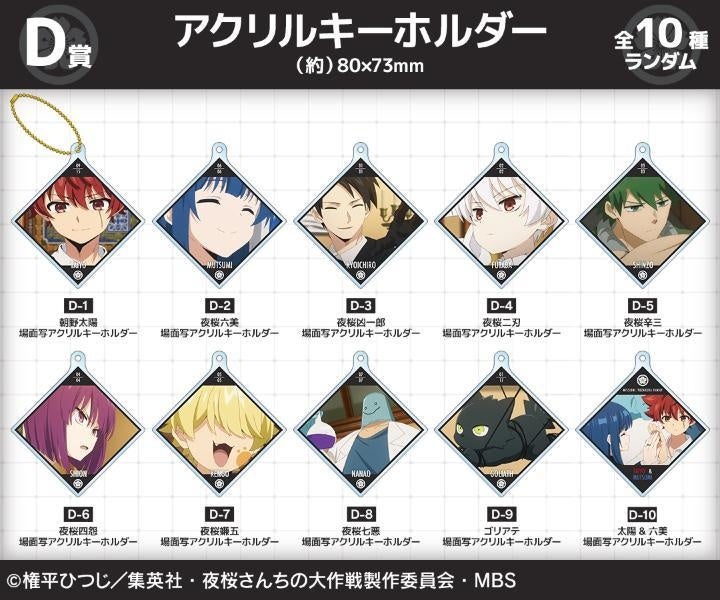 漫画・アニメのオリジナルグッズを販売する株式会社アルマビアンカ(本社:東京都中野区、代表取締役:坂井智成)は、自社オンラインくじサービス「DRAW!DRAW! -ドロー!ドロー!-」にて07月17日(水)よりTVアニメ『夜桜さんちの大作戦』オンラインくじを販売いたします!