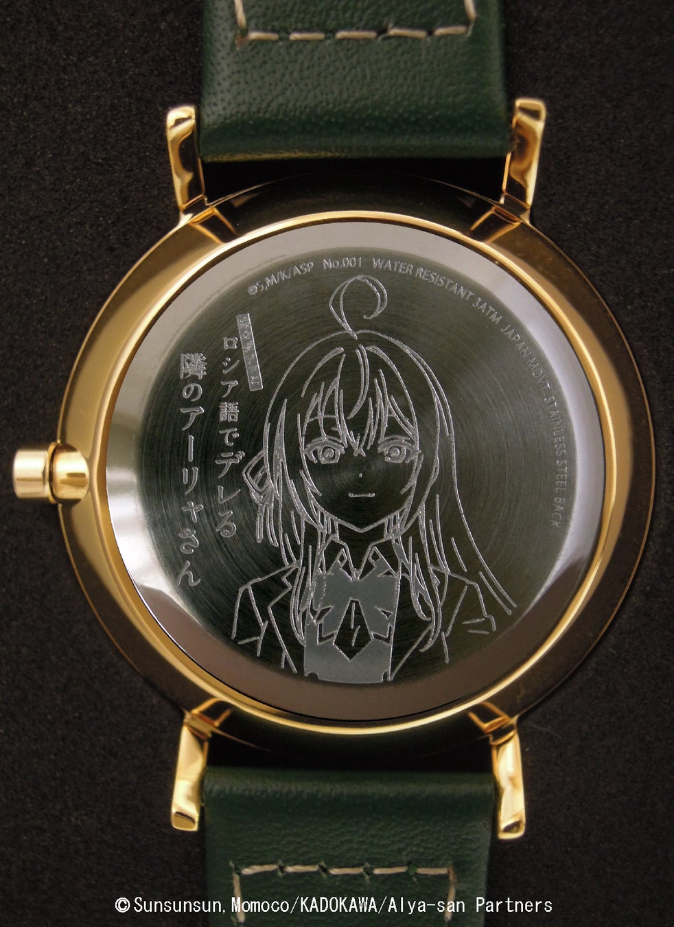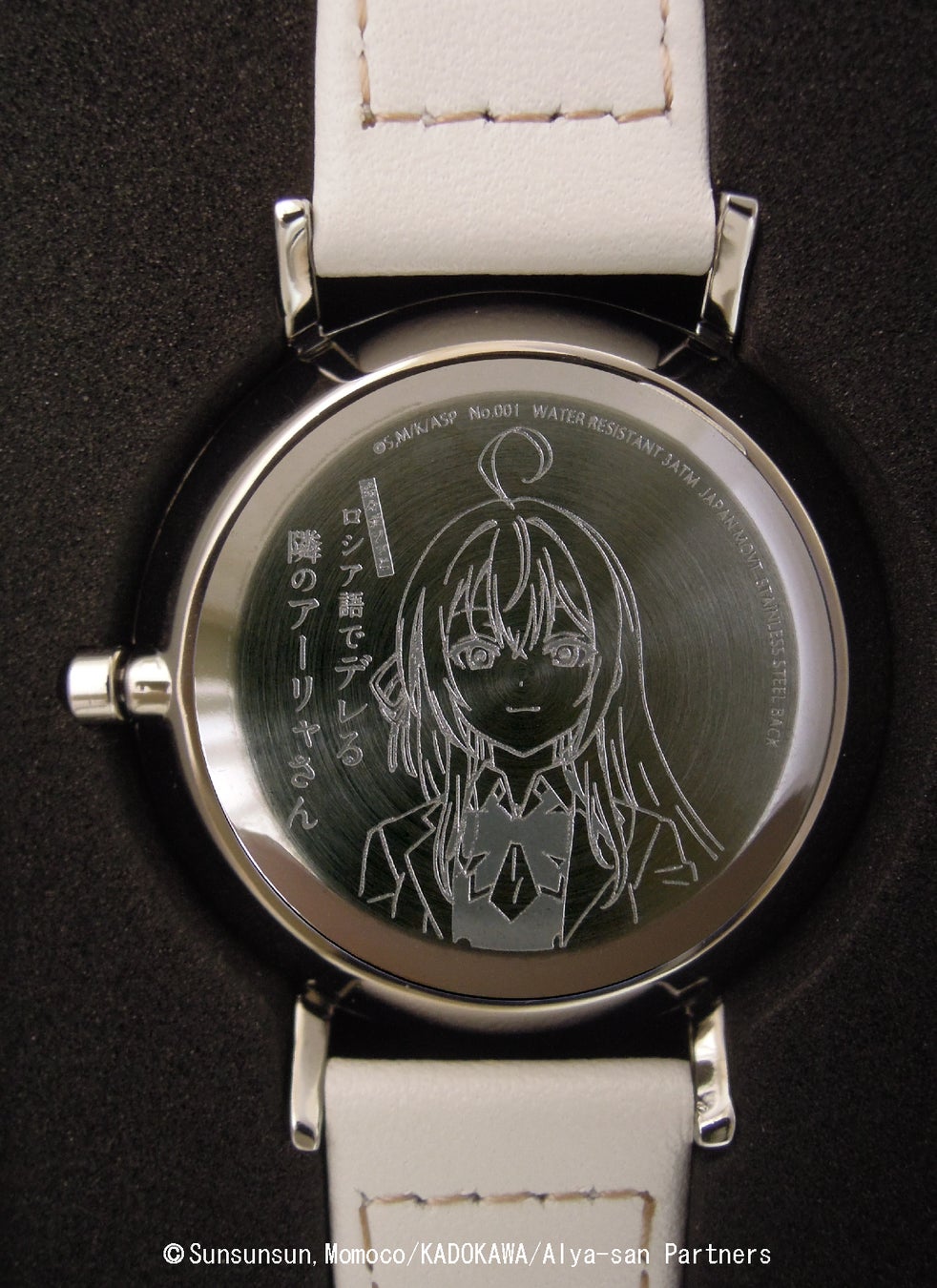 アーリャさんをイメージしたデザイン&配色で、作中に登場したセリフ(ロシア語)を盤面に施し、アーリャさんの姿を施した特別仕様の裏蓋が最大の魅力!