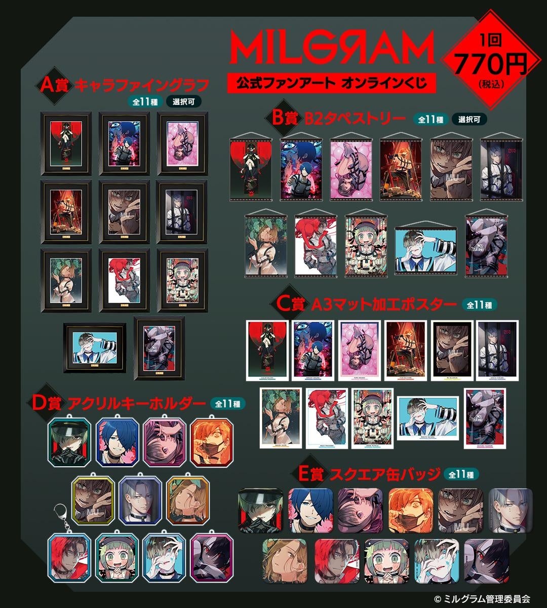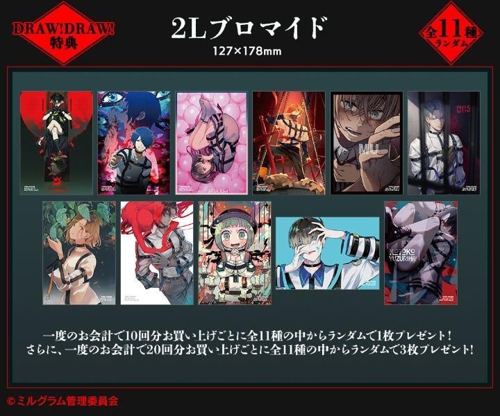 漫画・アニメのオリジナルグッズを販売する株式会社アルマビアンカ(本社:東京都中野区、代表取締役:坂井智成)は、自社オンラインくじサービス「DRAW!DRAW! -ドロー!ドロー!-」にて7月19日(金)より『MILGRAM -ミルグラム-』公式ファンアート オンラインくじを販売いたします!