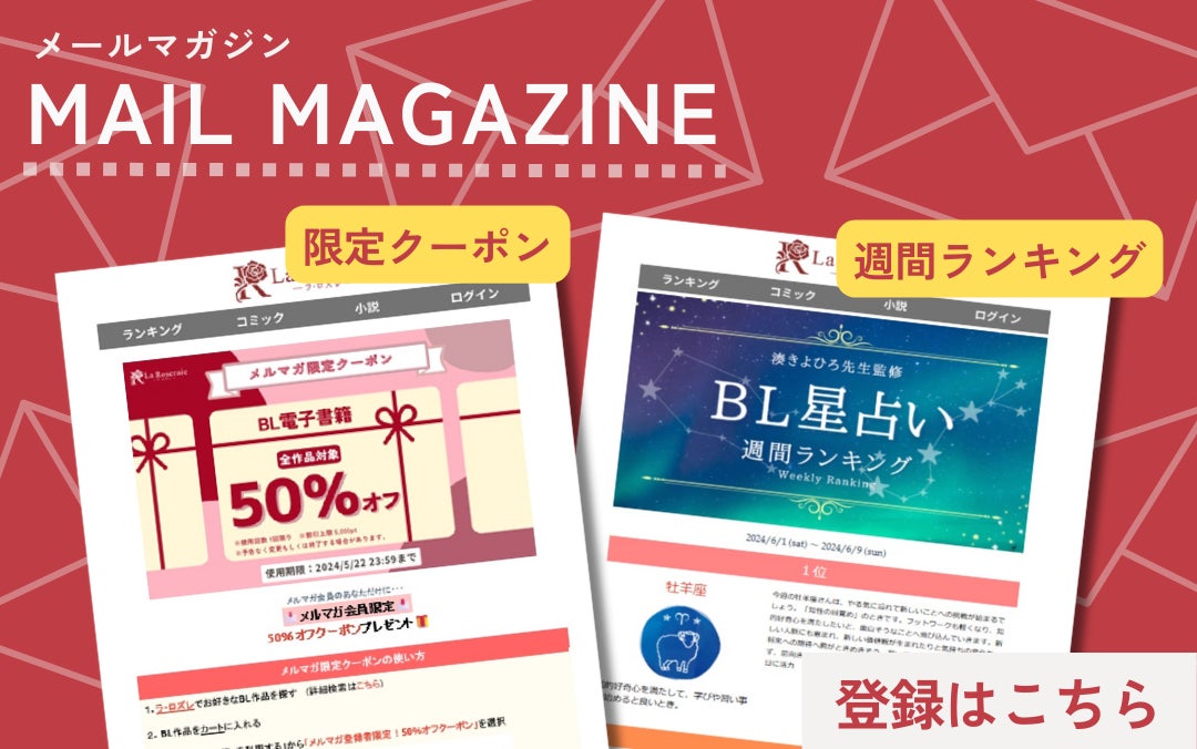 メルマガ限定クーポン(不定期)や、BL星占い週間ランキング(毎週配信)など、メルマガ限定コンテンツが満載です。