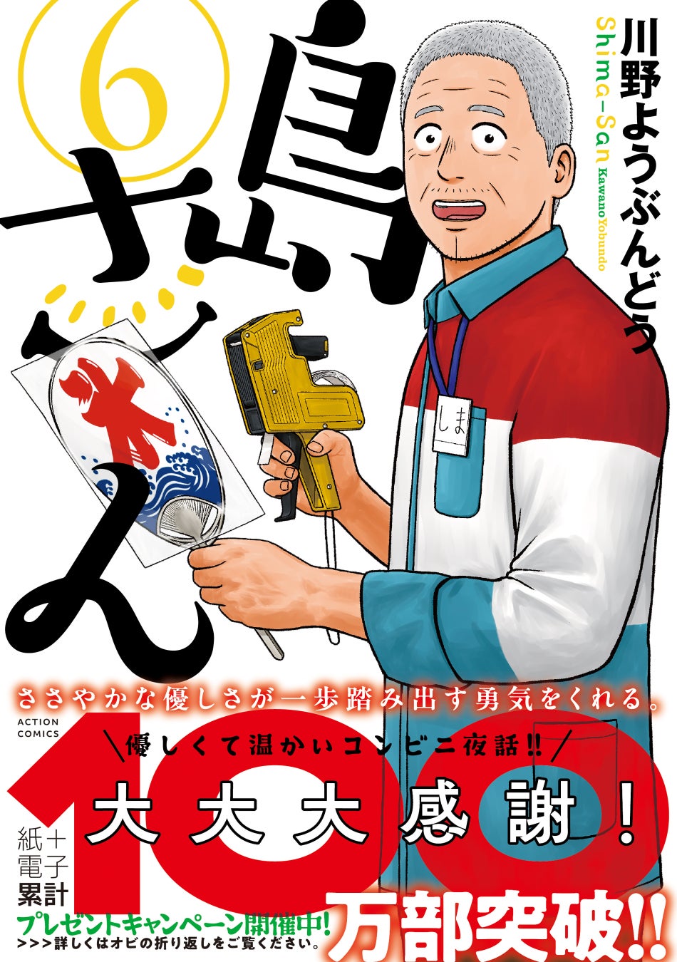 深夜のコンビニで働くちょっとわけありのおじいさんと周りの人たちのふれあいを描いた話題の漫画『島さん』(漫画アクション)が累計100万部(紙+電子)を突破しました。また、コミック最新6巻が7月25日発売となります。100万部突破と最新6巻の発売を記念して、プレゼントキャンペーンなど様々な施策を実施しますので是非ご注目ください。