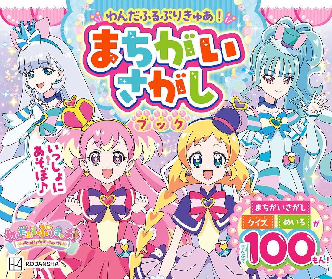 『わんだふるぷりきゅあ! まちがいさがしブック』は、まちがいさがし、クイズ、めいろがたっぷり100問収録。