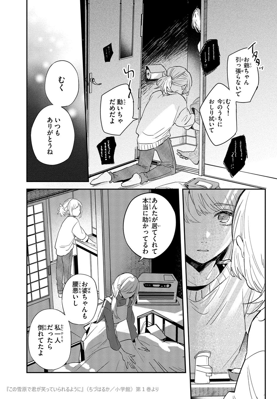ヤングケアラー女性を描いたマンガ『この雪原で君が笑っていられるように』(ちづはるか/小学館「Cheese!」連載中)。最新3巻が本日[2024年7月25日]発売になった本作は、福井県南越前町を舞台に、祖父の介護を優先して生きる20代女性が、幼なじみとの再会をきっかけに自分らしい生き方を見つけていく社会派ラブストーリー。連載開始以来、主人公の抱える生きづらさへの共感の声がSNSなどに多数寄せられています。